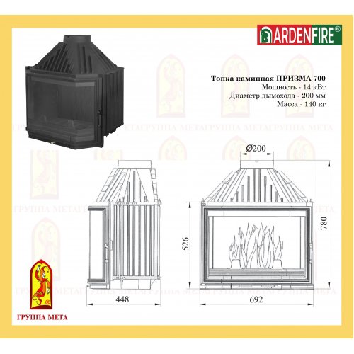 Каминная топка Мета Ardenfire Призма 700