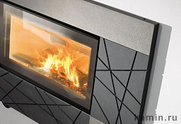 Корпус каминной топки выполнен из жаропрочной стали, колосники и патрубки из чугуна.